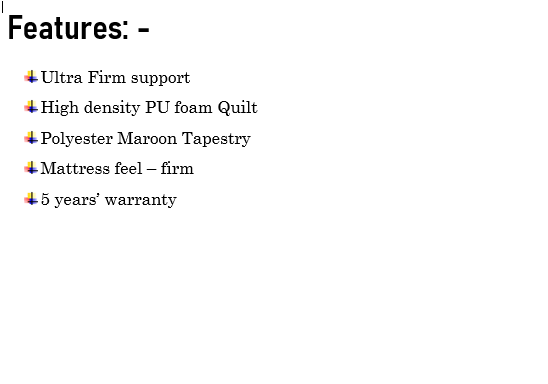 With a generous thickness re-bonded foam core layer and ultra-firm support, your spine and body will thank you for choosing this one. The high-density PU foam quilt on top and bottom is built to last and can withstand the weight. But that's not all - this mattress is also crafted to perfection with a beautiful maroon polyester tapestry, tailored with anti-bed bug thread, and locked in with a web tape finish. So what are you waiting for? Get ready to experience the best night's sleep you've had in a long time!