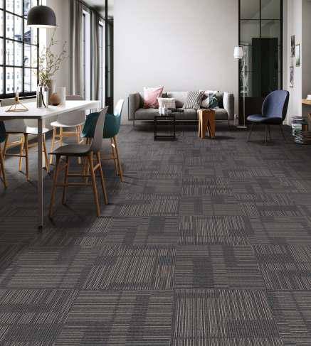 Textile carpet tiles are a versatile and stylish flooring option that combines the soft, comfortable feel of textile fibers with the practical benefits of modular tile design. Made from woven or tufted yarns (such as nylon, polyester, or other synthetic blends), these tiles offer a warm, inviting surface that’s comfortable underfoot making them suitable for spaces that balance comfort with performance, such as offices, lounges, hotels, retail areas, and residential spaces.